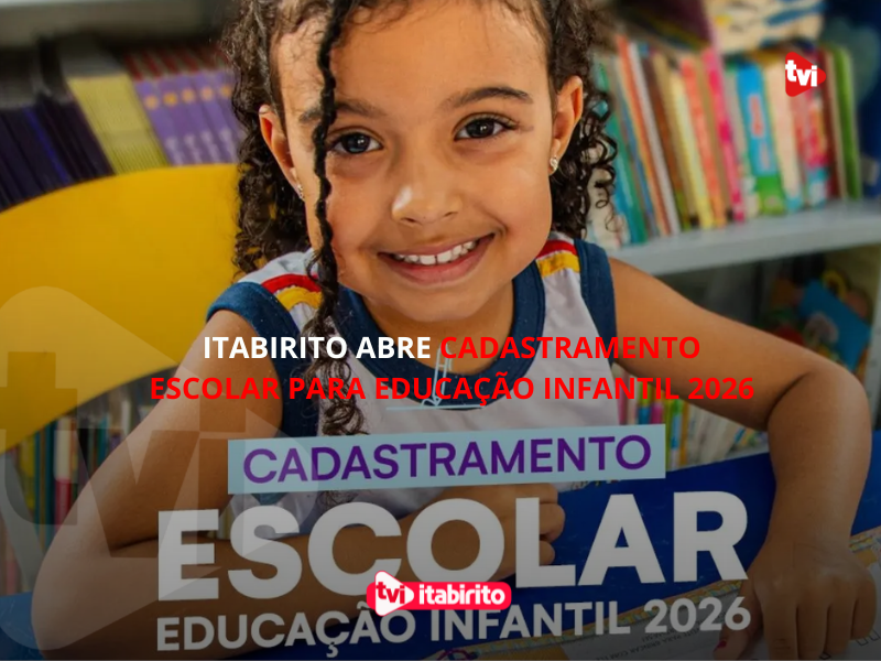 O cadastramento escolar para a Educação Infantil de 2026 já está aberto em Itabirito. A partir desta segunda-feira (25), pais e responsáveis têm até o dia 5 de setembro para inscrever as crianças que irão ingressar no berçário, 1º ou 2º período no próximo ano.